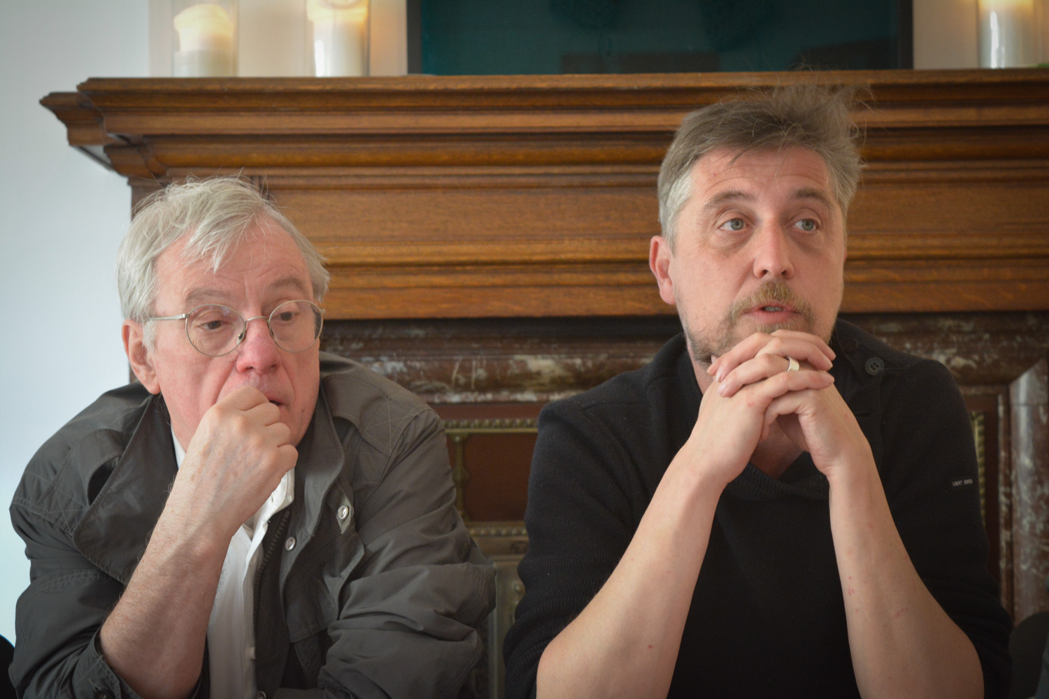 Jean Libon et Yves Hinant, célèbres pour leur émission culte Strip Tease et leur documentaire « Ni juge ni soumise » qui fait actuellement un tabac dans les salles de cinéma, sont venus déjeuner avec les jeunes de Out of the Box ce mardi 17 avril.